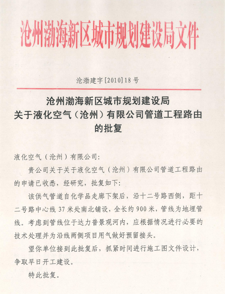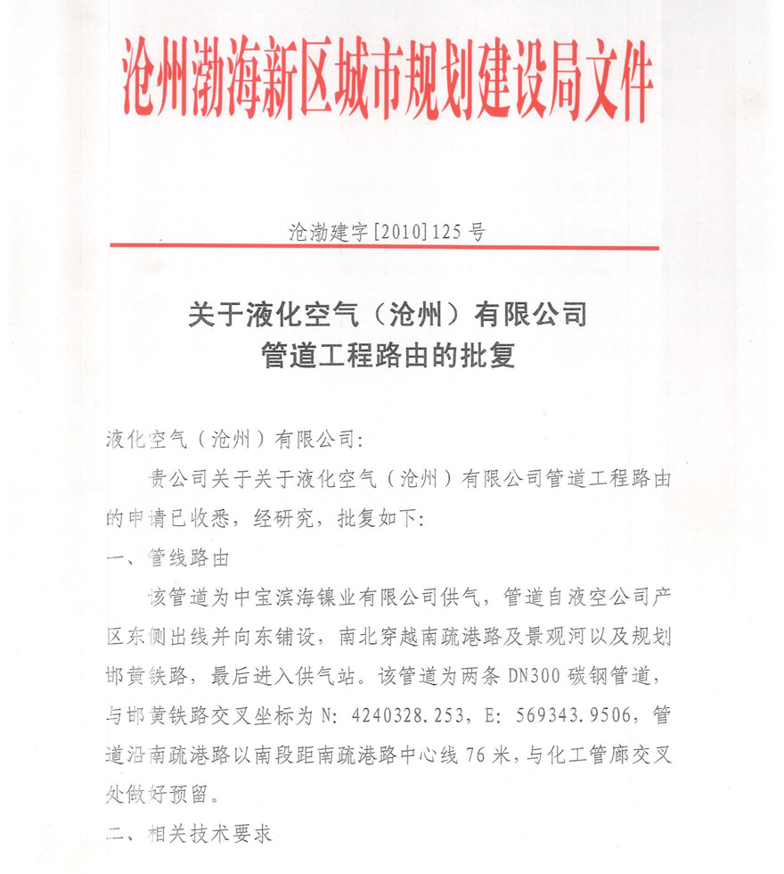 液化空气(沧州)有限公司输气管道项目工程规划批前公示